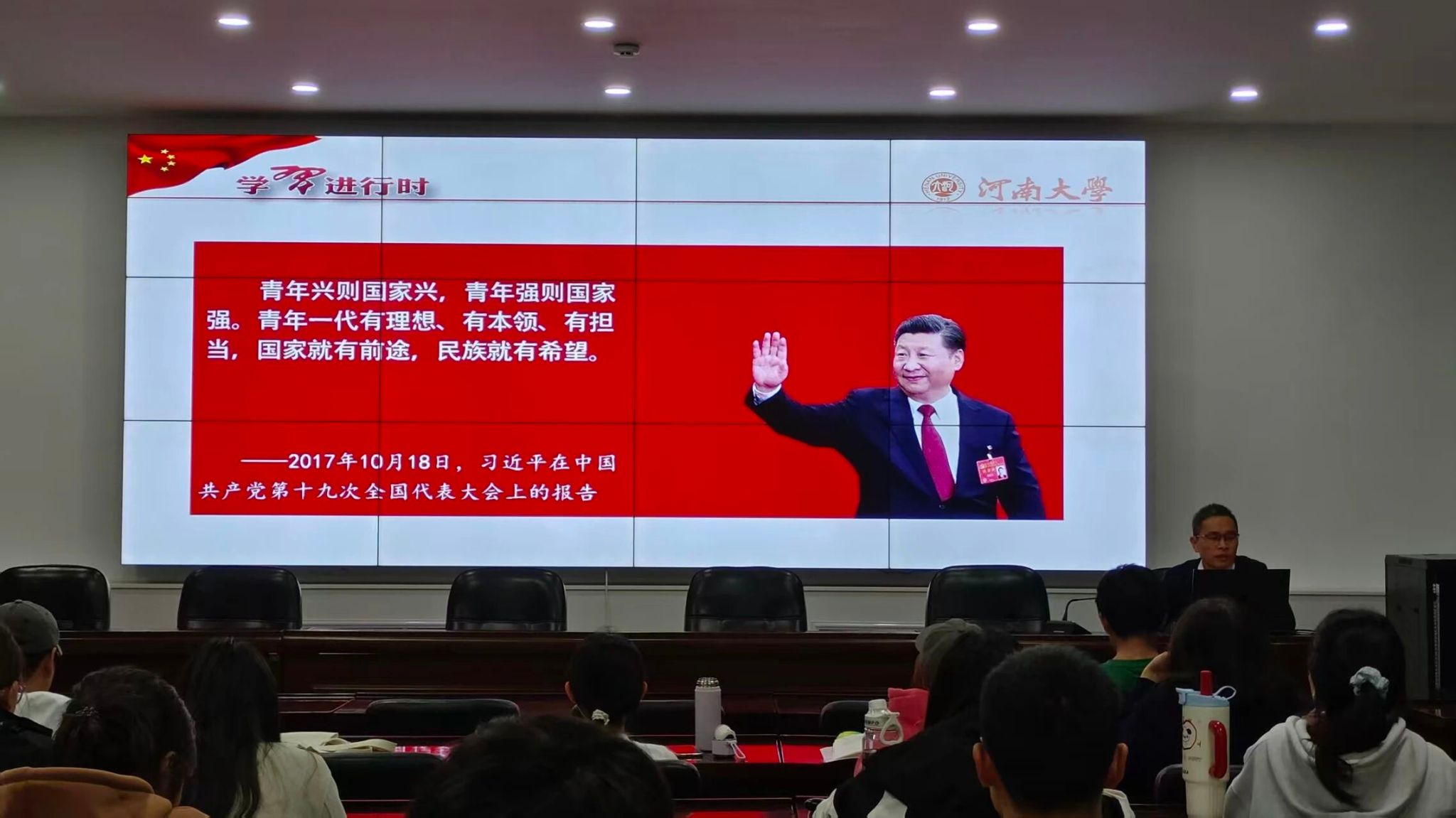 在价值观塑造的具体路径讲解中,刘英钦以青年习近平的成长历程为核心典范,带领同学们深入学习《习近平的七年知青岁月》所传递的精神力量。他详细梳理了青年习近平的成长轨迹:15岁到陕北插队,在艰苦的农村环境中磨砺意志;20岁当选大队党支部书记,在服务群众中积累经验;22岁考入清华大学,在知识殿堂中汲取养分;26岁进入国务院工作,在实践中锤炼能力。这一段段扎根基层、追求进步的经历,为在场学子树立了“在奋斗中成长、在奉献中升华”的鲜活榜样。