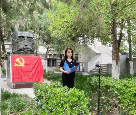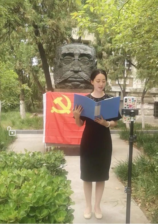 刘炯老师结合自身情况,从帮扶脱贫的角度详细诠释了党的初心是什么,引发同学们深思。随后由团委副书记郭缨老师宣读了在beat365疫情防控工作中涌现出来的先进代表并进行表彰。正是因为有了坚定的理想信念,才让我们党九十九年以来历经磨难,始终坚韧,不断成长,党委副书记姜妍又分别从中国共产党的薪火相传、李大钊与河大的故事、党在新时代如何培养学生,培养怎样的学生等方面向与会全体党员上了一堂生动有趣的微党课。最后,全体党员同志一起重温入党誓词,重忆入党经历,重问入党初心。