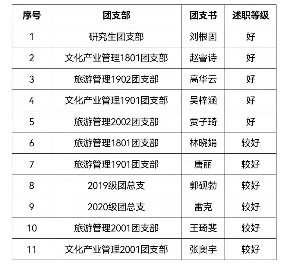 学院团委成立评审小组,结合团组织书记述职评议和日常掌握工作情况,对照团支部自评结果,进行复核认定。最终,学院团委根据自评、互查、报告答辩等环节,依据对标定级参考标准,并结合各支部日常工作综合考量,进行评星定级和团支书述职等级。