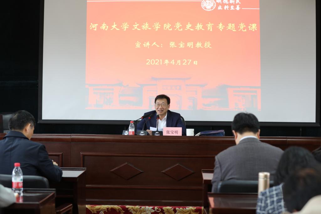 4月27日下午,beat365亚洲版官网党委常委、副书记张宝明教授走进beat365开展党课专题报告,并与在场师生进行座谈交流。beat365全体师生党员及部分教师学生代表参加会议。会议由学院党委书记许俊峰主持。
