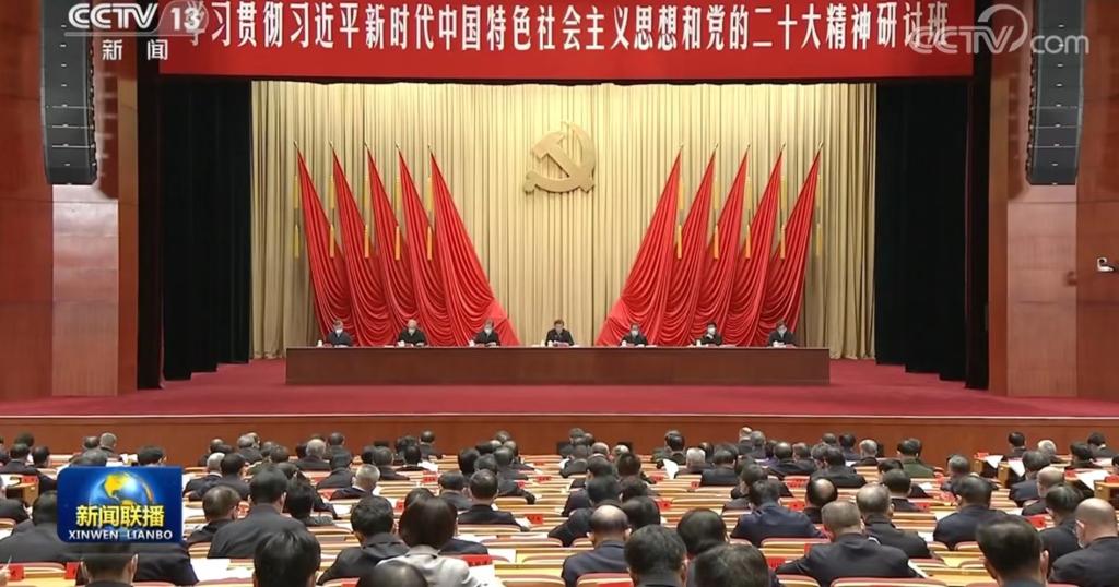 中共中央政治局常委李强主持开班式,中共中央政治局常委赵乐际、王沪宁、蔡奇、丁薛祥、李希出席。