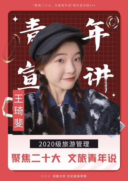 王琦斐,来自2020级旅游管理专业,共青团员,现担任旅管2001团支部书记和文旅院青年志愿者协会主席。曾获beat365亚洲版官网优秀学生干部、beat365亚洲版官网优秀共青团员等称号,“带你出道”全国大学生乡村振兴旅游目的地创意营销大赛二等奖、第十二届全国大学生红色旅游创意策划大赛华中地区一等奖、全国大学生粤港澳海洋旅游创新大赛华中赛区二等奖等奖项。