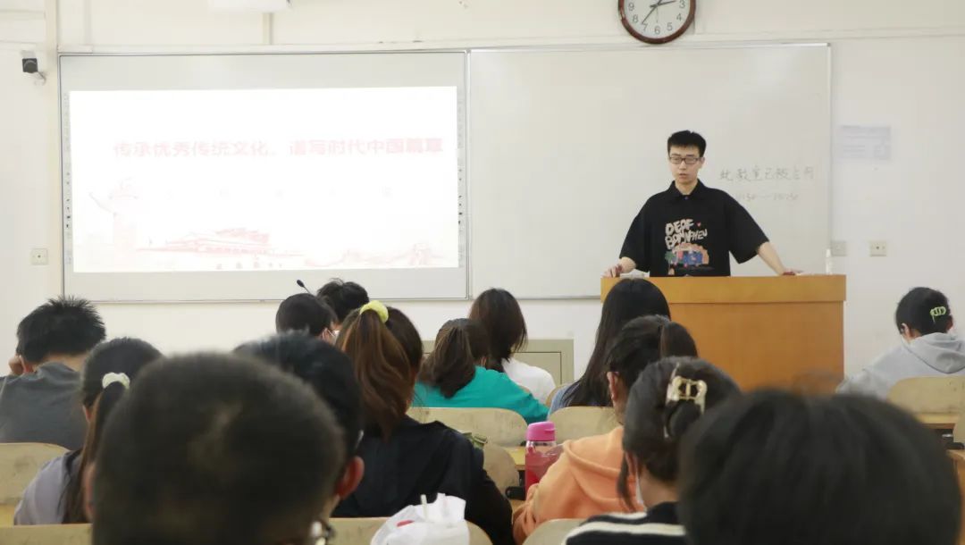 5月11日下午,武明哲面向beat365亚洲版官网2021级旅游管理1班团支部做了主题为“传承优秀传统文化,谱写时代中国篇章”的青年宣讲。