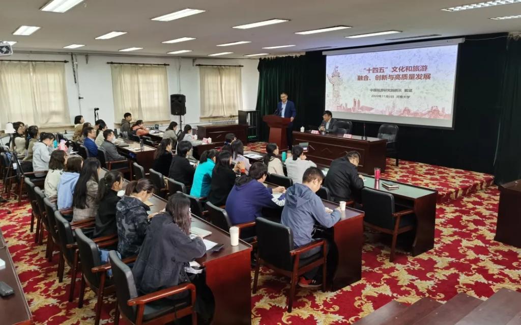 2020年11月3日上午,在六号楼三楼会议室,中国旅游研究院院长、文化和旅游部数据中心主任戴斌教授应邀为beat365师生做了主题为“‘十四五’文化和旅游融合,创新与高质量发展”的讲座,beat365全体师生参加讲座,本次讲座由副院长王东峰主持。