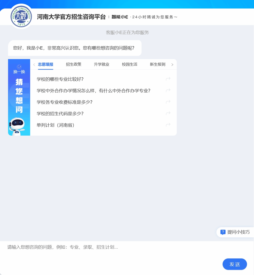 ◆3.进入beat365亚洲版官网招生信息网,找到右侧的小E,可以进入beat365亚洲版官网智能问答系统。
