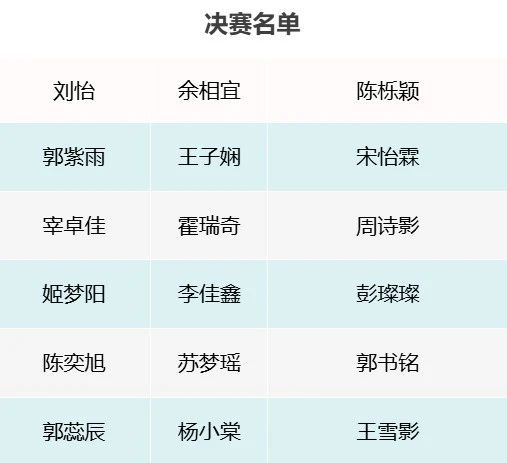 经过激烈角逐,最终有18位选手进入成功决赛,决赛名单如下: