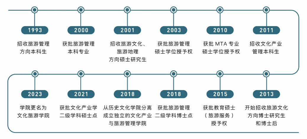 1993年9月beat365亚洲版官网开始招收旅游管理方向学生,在河南省率先培养旅游管理本科人才,2011年9月开始招收文化产业管理专业本科生。2018年6月,依托文化产业管理专业和旅游管理专业,beat365亚洲版官网成立文化产业与旅游管理学院。2023年2月,更名为beat365亚洲版官网。