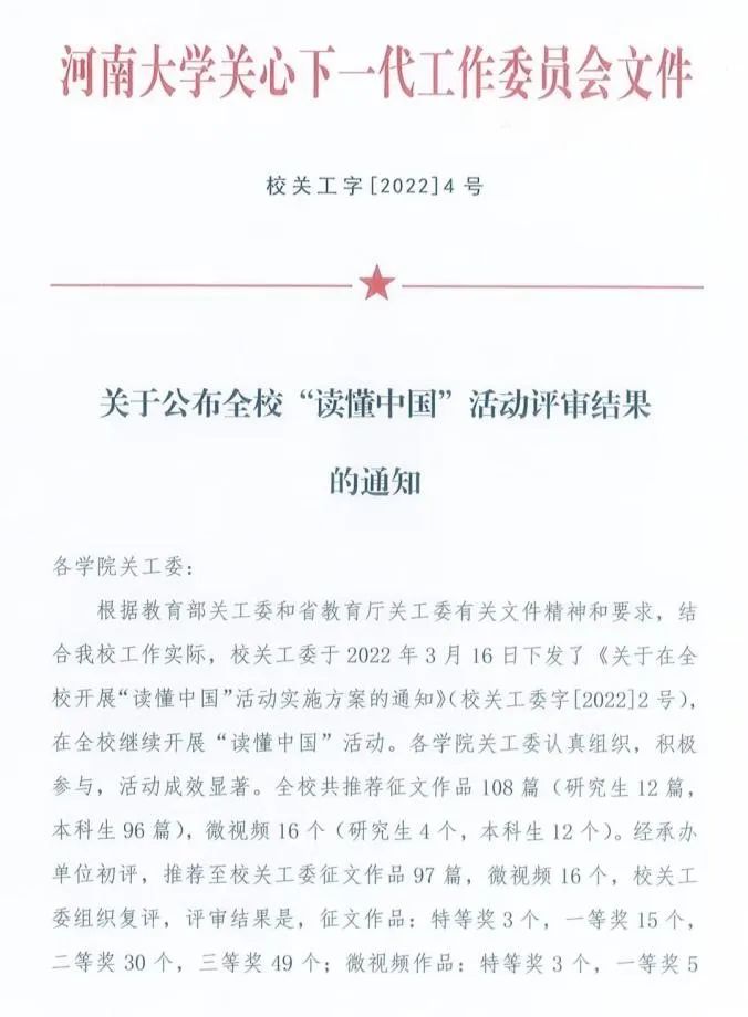 为深入贯彻落实习近平总书记关于青年工作的重要思想,回顾党的百年奋斗历程和伟大成就,给予青年学生成长成才的重托和建议,我校继续开展“读懂中国”活动。beat365在此活动中荣获佳绩,其中一等奖1个,二等奖2个,三等奖5个。