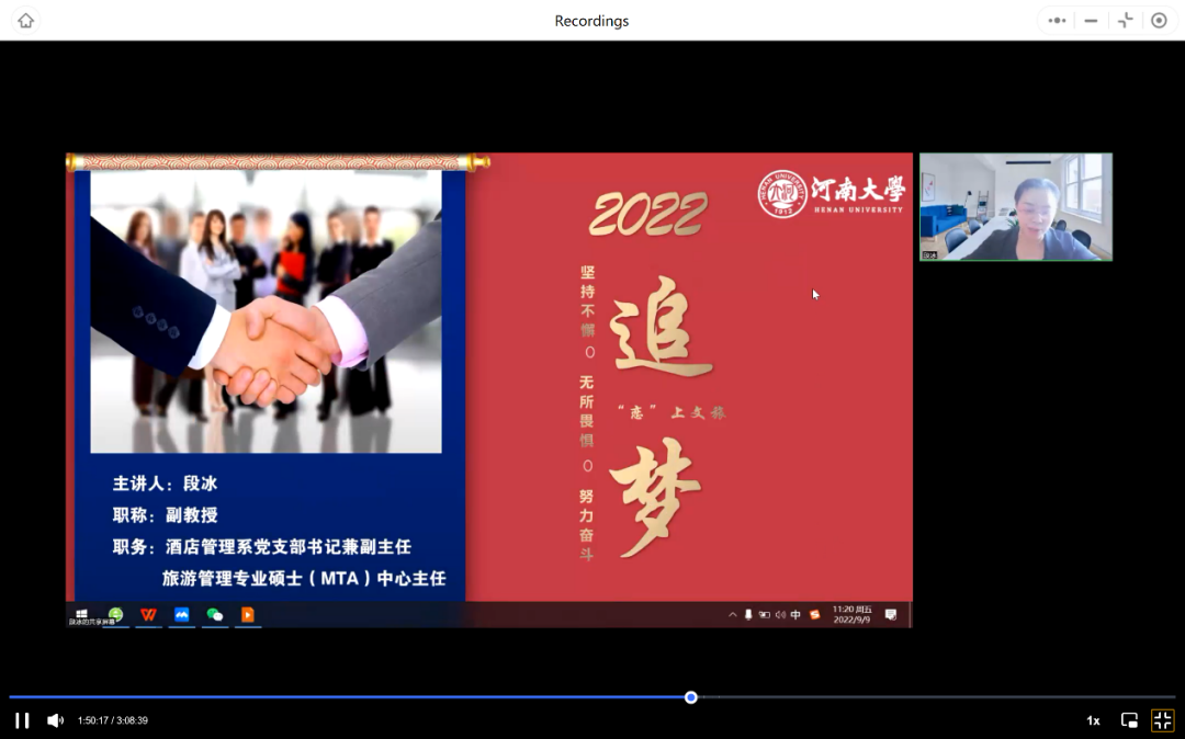 段冰老师对当下旅游业发展状况进行了基本阐述,对旅游管理者就业方向,相关岗位进行了介绍,通过分享一些业内优秀的旅游管理者的故事指出身为旅游管理者需要保持信心,深耕于专业领域。