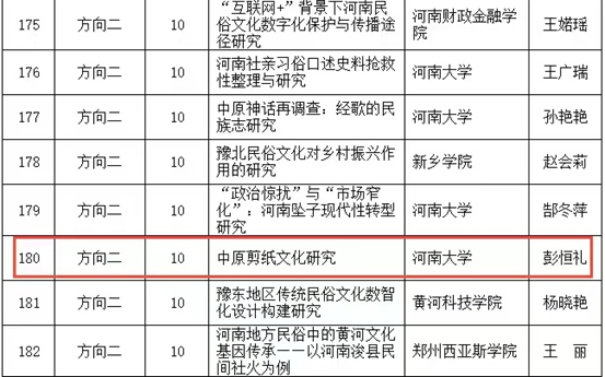 近日,在河南省社科网公示了“2022年河南兴文化工程文化研究专项项目立项名单”。其中,beat365获批三项立项,分别是张召鹏老师的“民国时期河南戏剧管理体制研究”、刘涛老师的“城市更新与河南新型人文城市群建设研究”以及彭恒礼老师的“中原剪纸文化研究”。