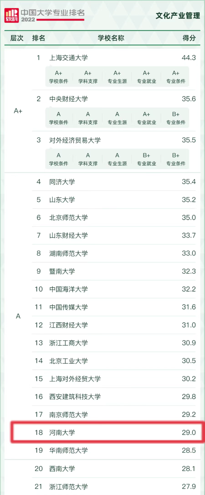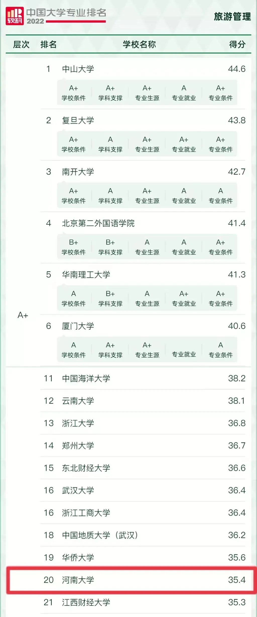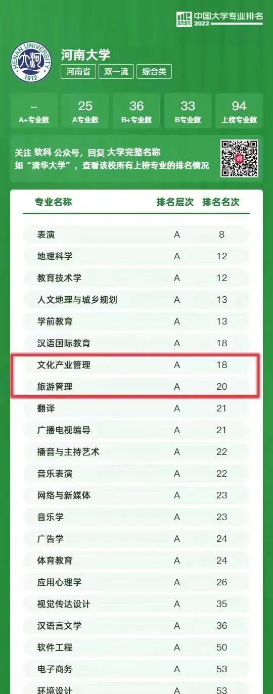 文化产业管理专业全校专业排名第7、旅游管理专业全校专业排名第8