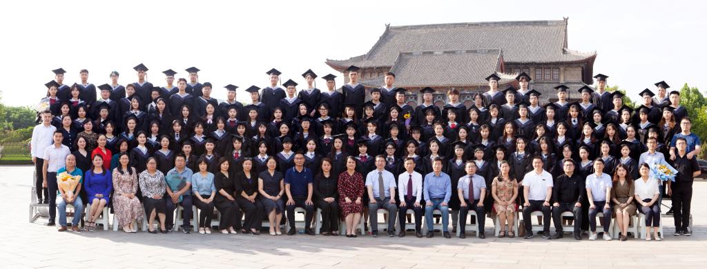 在欢快激昂的乐曲声中,受校长宋纯鹏委托,王学路副校长和程遂营院长向本科毕业生授予学士学位、拨穗正冠,并合影留念。