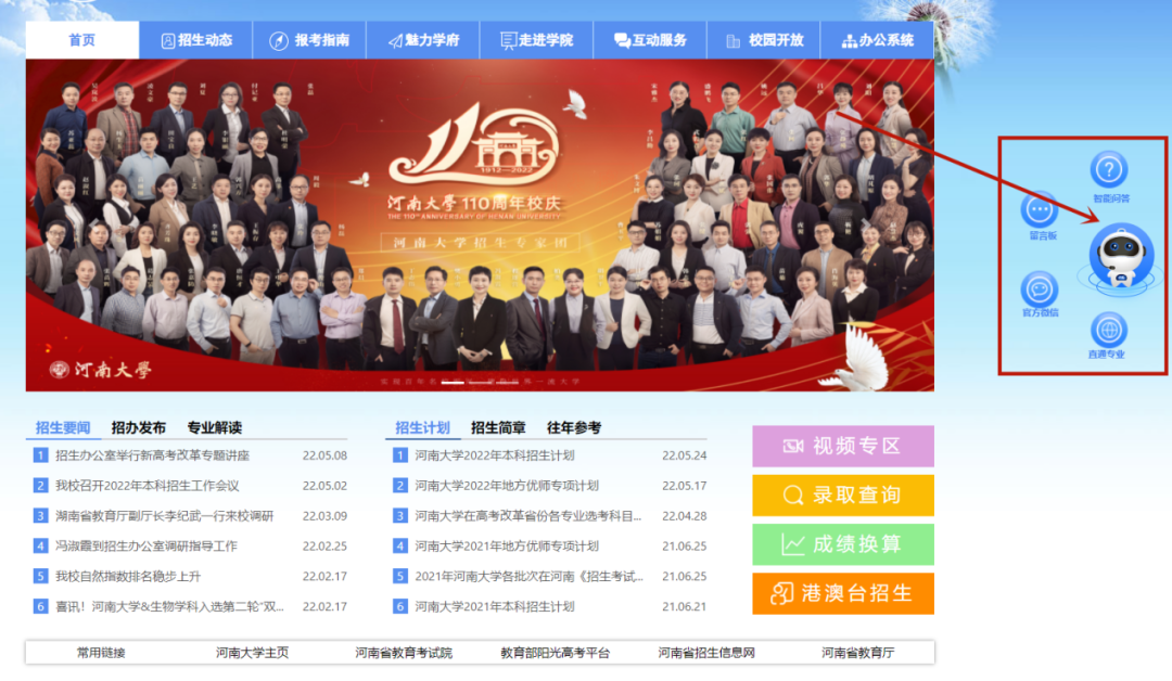 ◆3 进入beat365亚洲版官网招生信息网,找到右侧的小E,可以进入beat365亚洲版官网智能问答系统