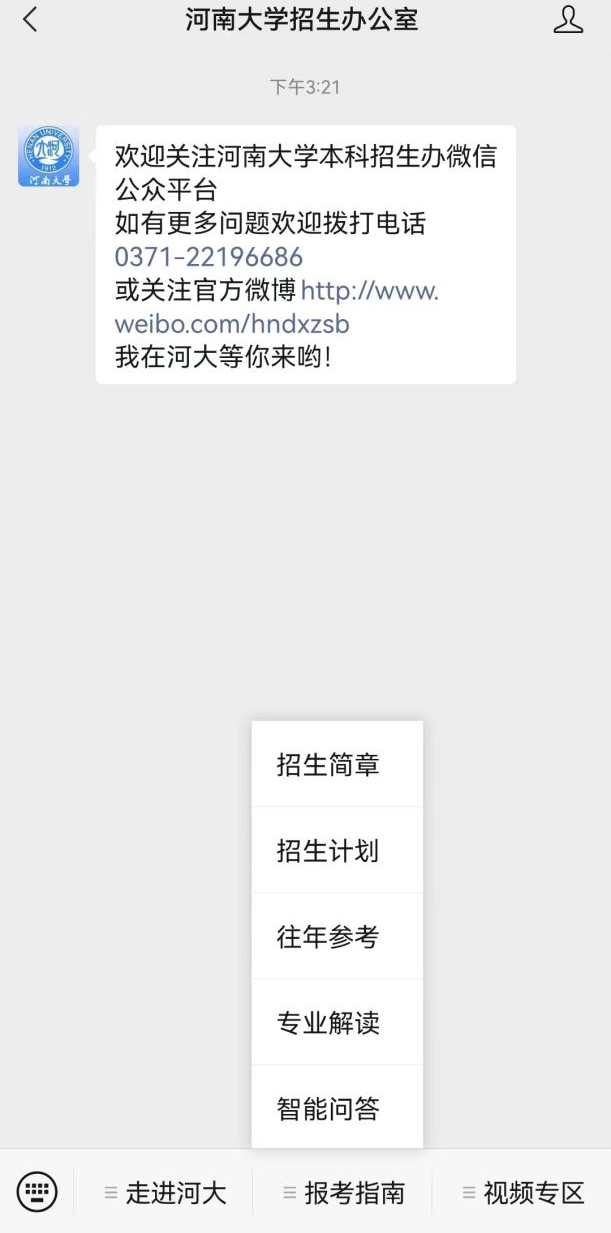 ◆1 关注“beat365亚洲版官网招生办公室”官方微信号,点击微信公众号菜单“报考指南”栏中“智能问答”,即可进入智能问答系统。