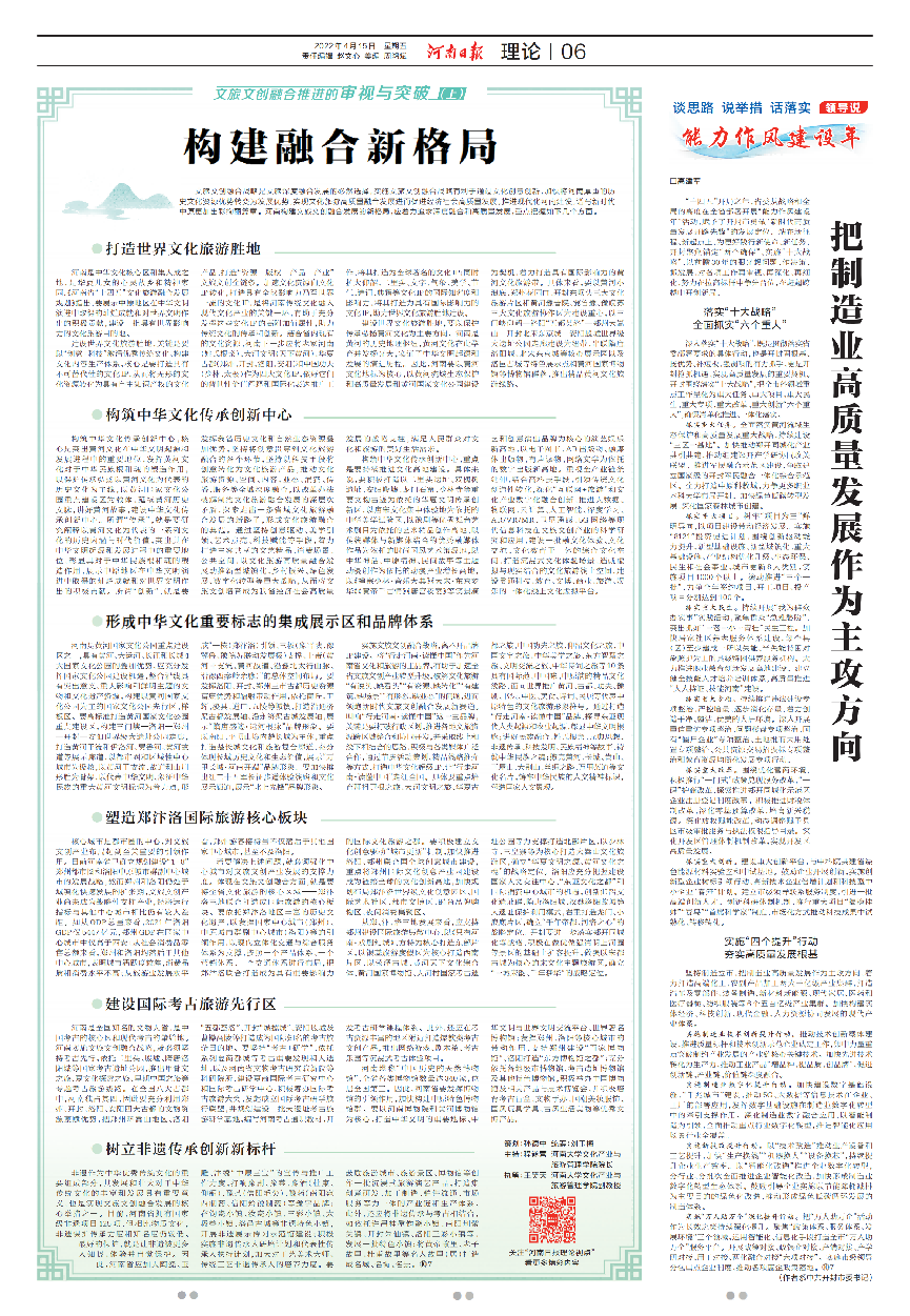 以上系列文章深入阐释了河南文旅文创融合的内涵、机遇、问题与路径,对推动实施文旅文创融合战略和加快建设文化旅游强省,具有重要意义。
