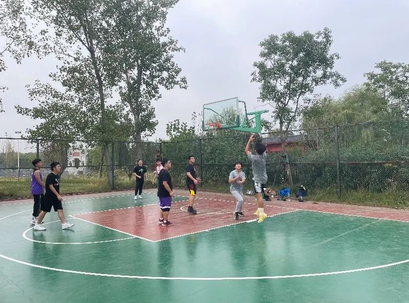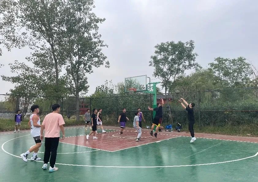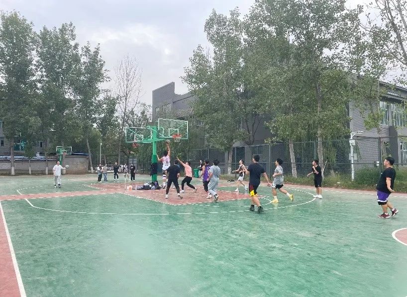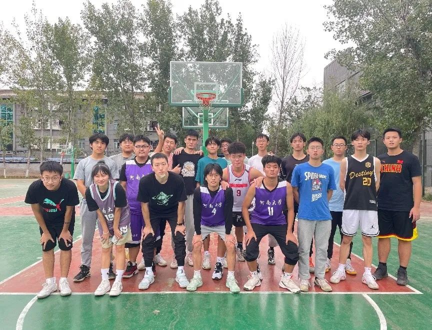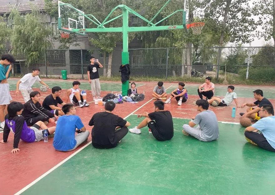 比赛结束后,新老生队员们围着坐成一圈进行自我介绍,大家的距离一下拉近了很多。之后,大家还进行了合影留念,微冷的北操场又多了些温暖。蓝天白云下,青砖铁塔旁,一场精彩纷呈的篮球友谊赛到此圆满结束。