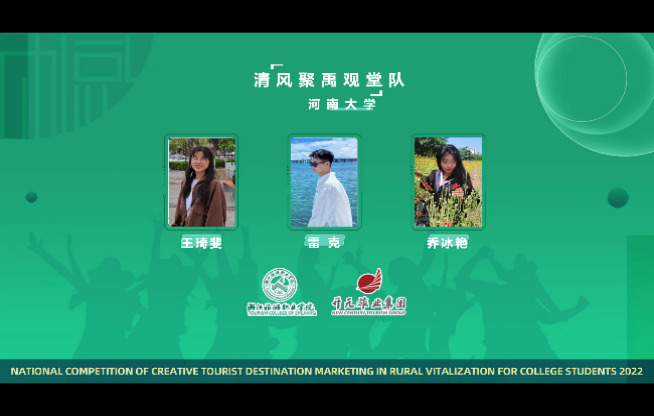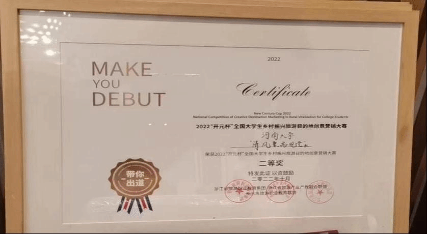 由beat3652020级旅游管理专业学生王琦斐、雷克和2022级旅游职业教育专业研究生乔冰艳组成的清风聚禹观堂队,在创意与规划系党支部书记宋军令副教授老师的指导下,成功进入决赛并荣获首届“开元杯”2022全国大学生乡村振兴旅游目的地创意营销大赛二等奖,其所属院校beat365亚洲版官网获得优秀组织奖、优胜奖,指导老师宋军令获“优秀指导老师”奖。