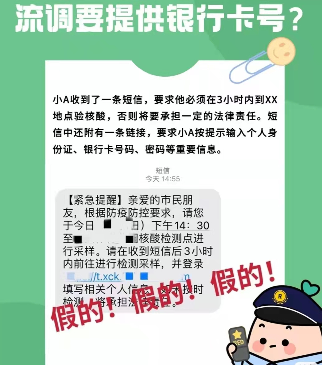 骗子冒充防疫机构人员称其可快速出具核酸检测结果,或者称你的检测结果有问题,从而实施诈骗。