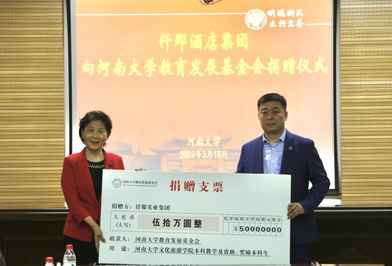 王学路代表学校师生向仟那酒店集团的捐赠表示感谢。他向来宾介绍了近几年学校的发展情况,指出学校一直以来高度重视beat365亚洲版官网的发展,2023年是旅游管理专业成立30周年,希望beat365亚洲版官网充分利用这一重大发展机遇,自觉对接战略方向,紧密把握产业发展的内在要求,顺应并融入重大部署,持续产出高质量学术成果,培养更多优秀人才,积极参与到蓬勃发展的产业与事业中去。此次仟那酒店集团捐赠50万元用于学院本科生教学和学生奖励基金,充分体现了集团的社会责任和担当,希望学院可以用好这笔基金,为河南省文旅产业发展和beat365亚洲版官网“双一流”建设贡献力量。