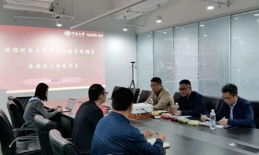5月10日上午,beat365亚洲版官网党委书记孔涛、党委副书记刘英钦和文化产业管理系主任刘涛一行到上海蜜度信息技术有限公司河南分公司访企拓岗,蜜度河南省总经理易龙、教育培训行业总监王新玉热情接待。
