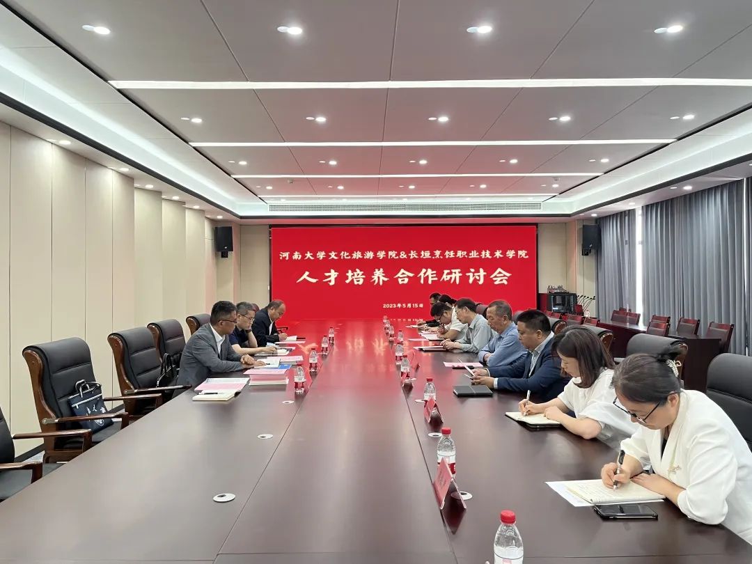 在随后召开的合作交流研讨会上,长垣烹饪职业技术学院副校长赵玉奇教授代表全校师生对孔涛一行的到来表示热烈欢迎,并就双方合作提出了初步建议。孔涛就学院的专业发展历程与此次访企拓岗活动的背景进行了说明,刘英钦重点介绍了学院的研究生教育情况及2023年毕业生的就业需求。双方结合《中共长垣市委 长垣市人民政府 关于以“豫菜振兴”为引领推动长垣创建 世界美食之都建设高质量产业集群的实施意见 (2022 年 10 月 12 日)》文件精神,就合作共建研究生实习就业基地、烹饪文化研究院和烹饪文化数据库、与长垣市政府三方共建长垣文化旅游研究院、共同为长垣文化旅游产业高质量发展提供规划策划方案与人才支撑、支持长垣烹饪职业技术学院本科层次教育创建,共同打造中小学烹饪和文化旅游职业教育研学旅行高地、共同开展茶艺师职业技能等级社会评价认证等议题进行了深入的研讨,在助推学院研究生就业、双方开展人才培养与科学研究的合作交流等方面达成了广泛的共识。长垣烹饪职业技术学院副校长赵俊杰主持了此次研讨会,长垣烹饪职业技术学院发展规划处处长于瑞琦、教务科研处处长李姣、beat365亚洲版官网院长权雲丹、烹艺学院院长高敬严、食品学院院长王静静等参加了研讨会。