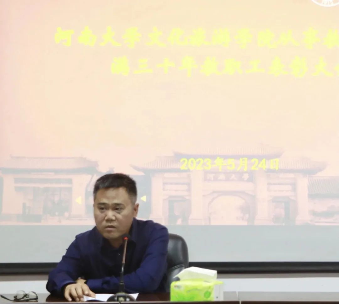 他讲到,学院的建设和发展离不开各位老师多年来的辛勤付出和大力支持,在“双一流”建设背景下,学院需要转型发展,希望各位老师一如既往为学院发展建良言献实策,共同推进学院快速发展。同时,他强调,作为一名高校老师,要坚持以德修身、以德育人,塑造崇高的人格魅力;要以学齐人、以学齐志,做学生的大先生;要以文化旅、以旅塑旅,构建和谐的文化环境,努力做到为党育人、为国育才,做一个合格的高校老师。