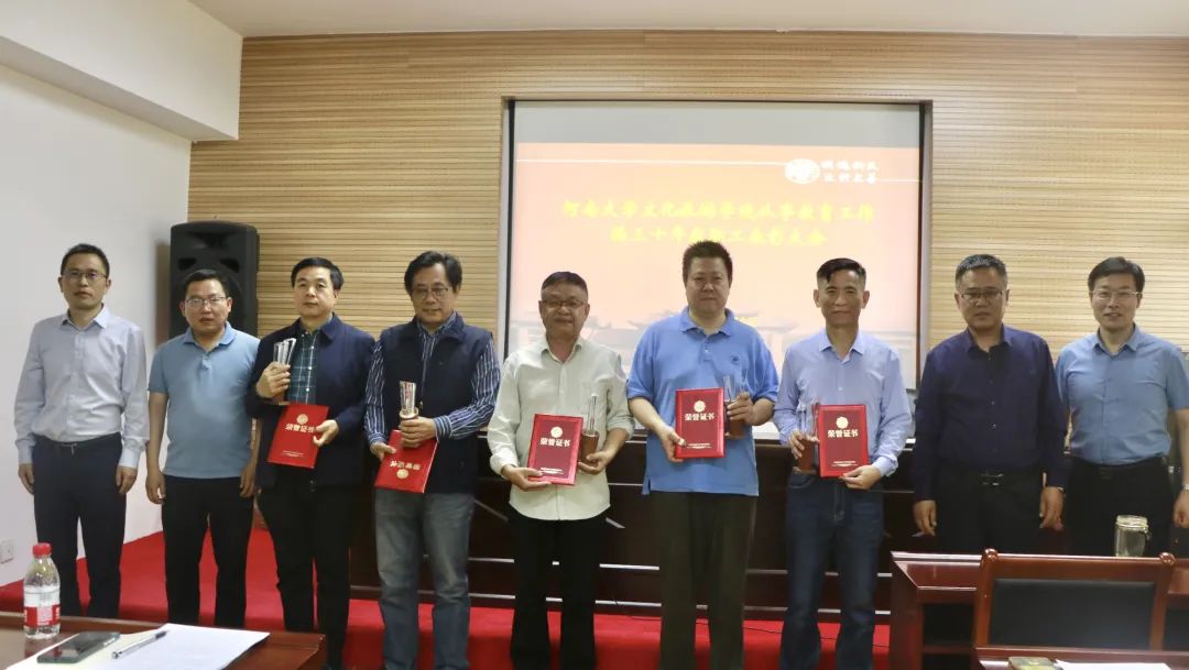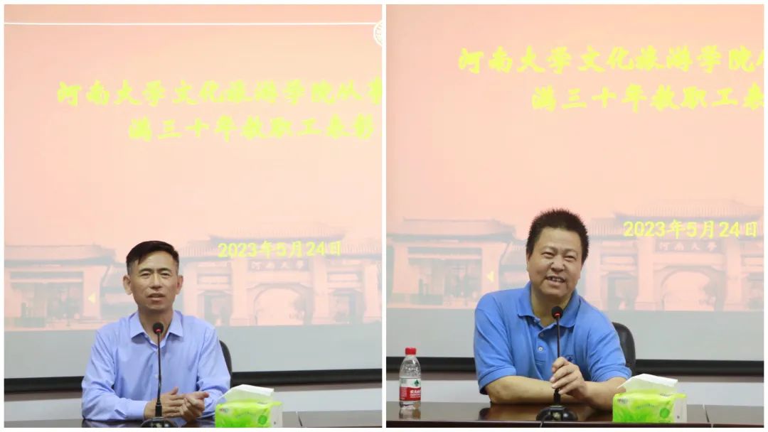 受表彰教师代表许俊峰深情回顾了自己的教学生涯,分享从教感悟、畅谈河大情怀,表达了对祖国教育事业的真挚热爱和对学校深深的眷恋。