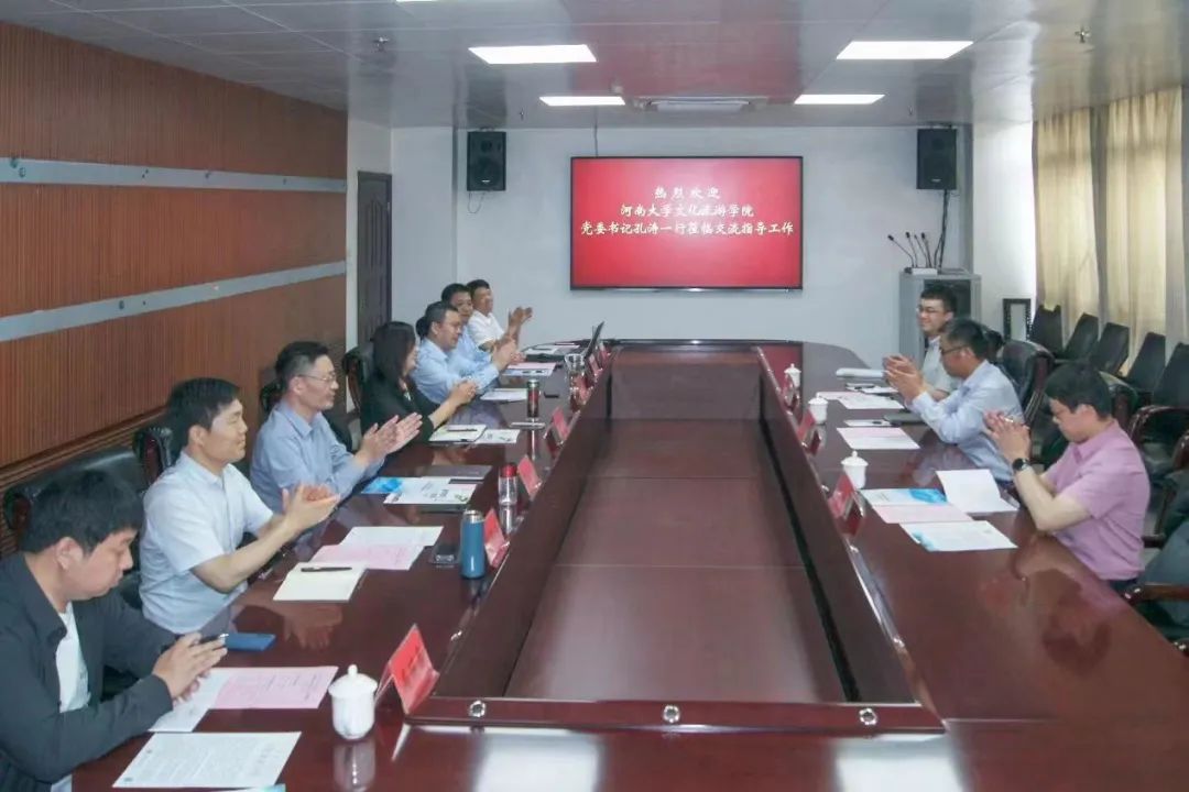 为进一步深化交流合作,推动beat365亚洲版官网产学研融合高质量发展,5月31日,beat365亚洲版官网党委书记孔涛、创意与规划系主任陈楠、研学旅行研究中心副主任袁箐一行赴河南省地质科学研究所有限公司就校企合作、实习就业岗位拓展、地质地貌资源旅游活化及工业遗址开发等问题开展交流合作。河南省地质科学研究所有限公司党委书记、董事长冯翔,党委副书记、副董事长、总经理何玉良,党委委员、副总经理李永恒、刘涛,综合办公室主任时湘江,地质文旅文创中心主任申开洪,工程师尚瑞鑫热情接待。