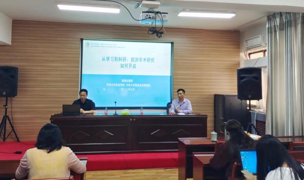 6月2日下午,华侨大学旅游学院院长谢朝武教授在学院302会议室为beat365师生做了题为《从学习到科研——旅游学术研究如何开启》的学术讲座,讲座由beat365亚洲版官网程遂营教授主持。