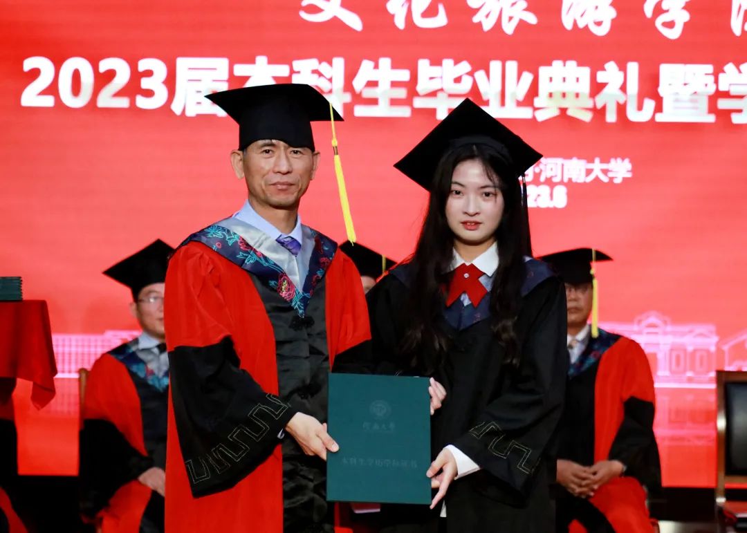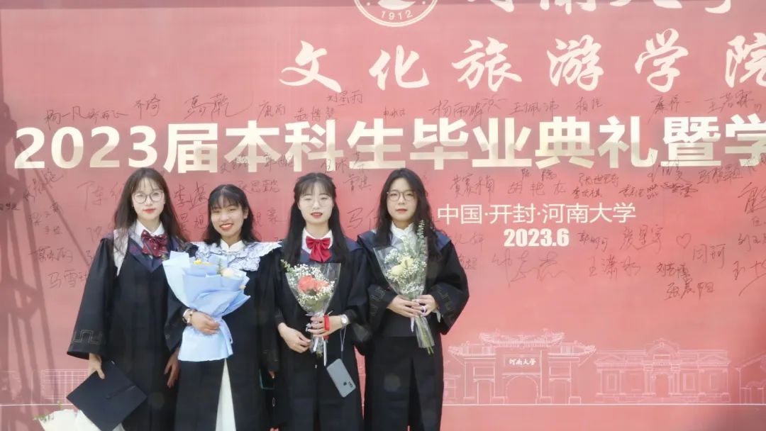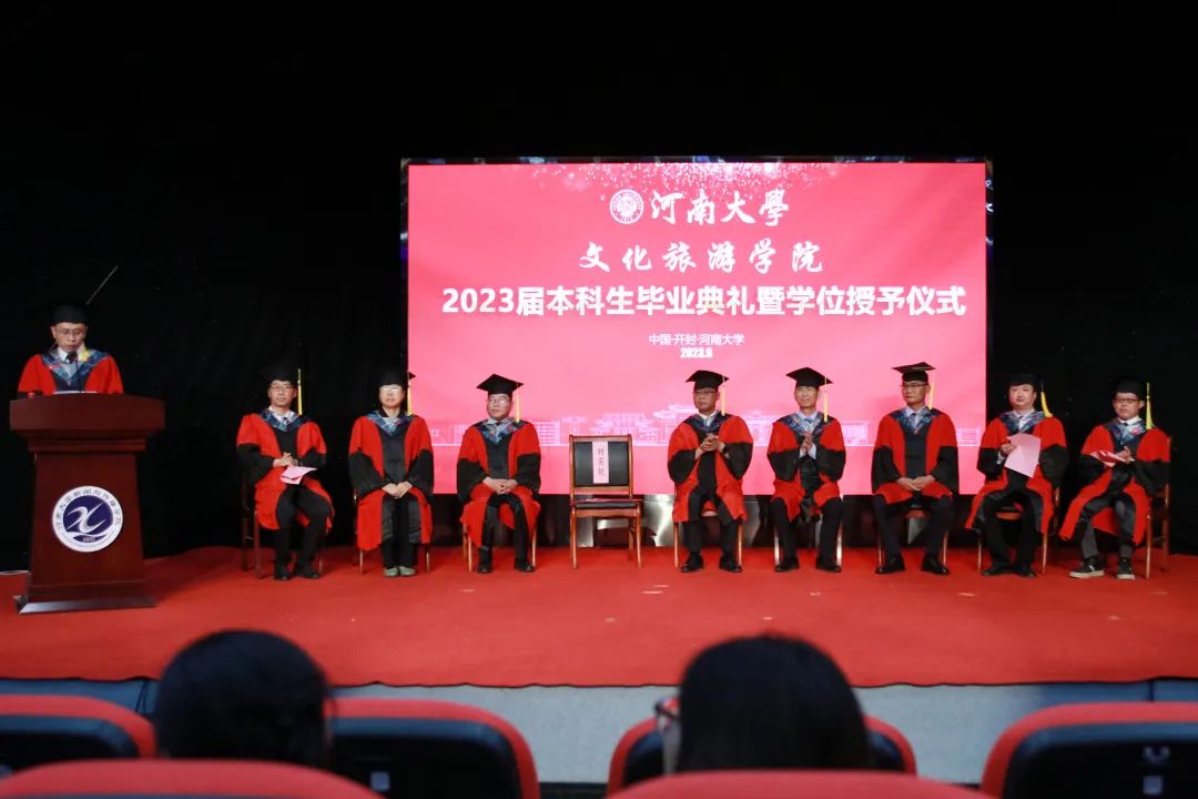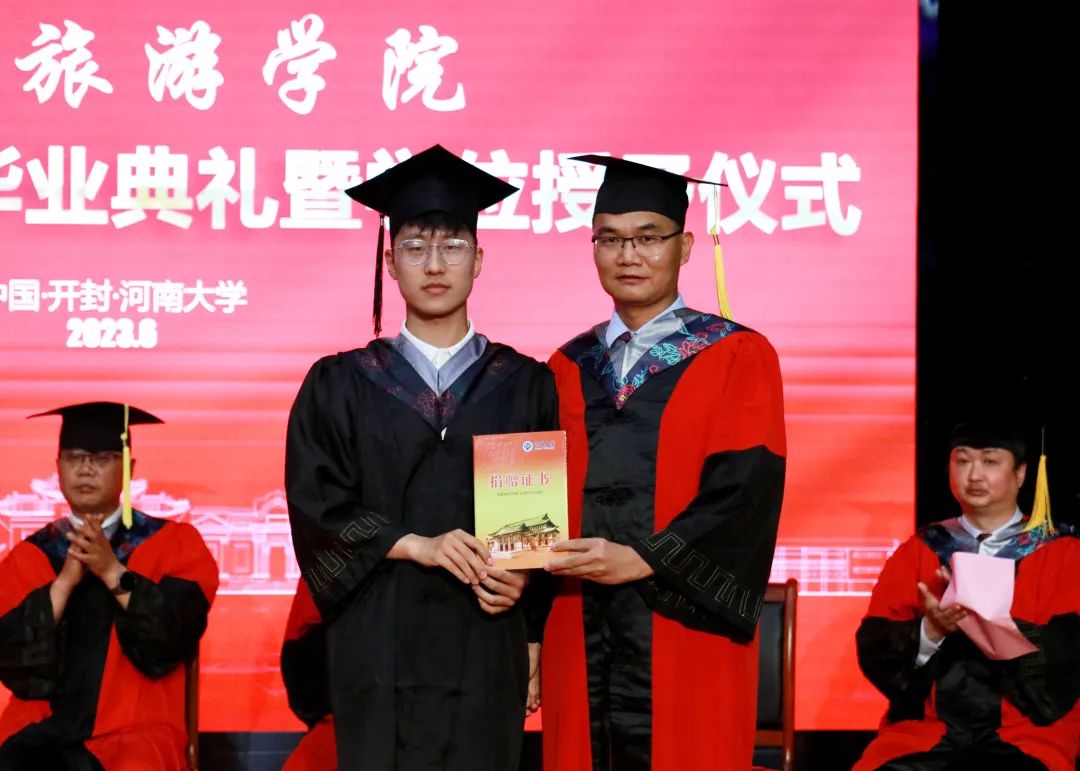 院党委书记孔涛向顺利完成学业的毕业生们表示热烈祝贺,并寄语大家:一是要做优秀的河大人,牢记校训,提高自身修养,自觉肩负民族复兴大任,在推进中国式现代化伟大征程中建功立业;二是要做出色的文旅人,无论在任何领域、任何行业、任何岗位,始终牢记自己文旅人的身份,以自己的所学所为为推动文化强国建设、促进中国文化旅游事业的发展贡献智慧和力量;三是要做一生的追梦人,坚守初心和理想,保持自信和从容,仰望星空、脚踏实地,拥抱自己的诗与远方。