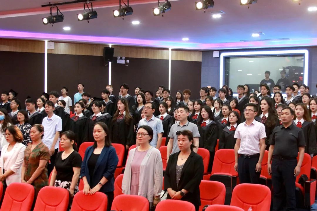 毕业典礼在庄严的国歌声中拉开帷幕。