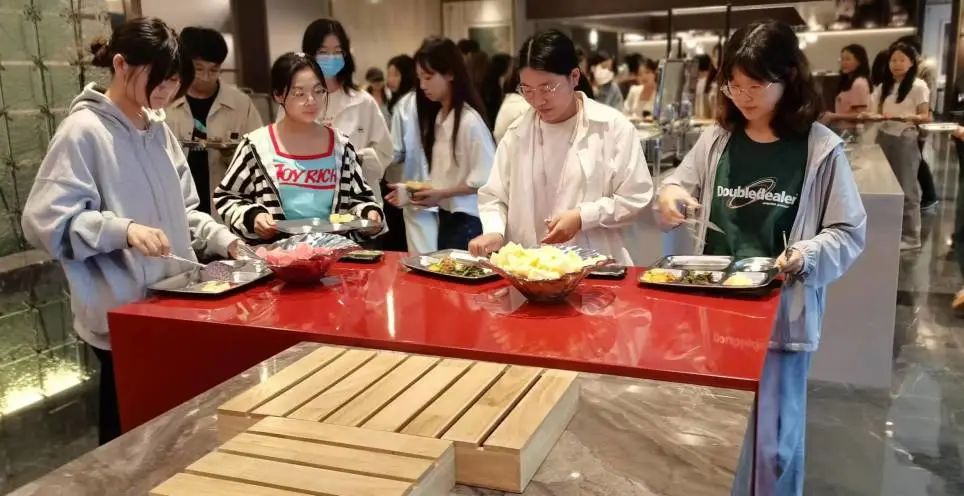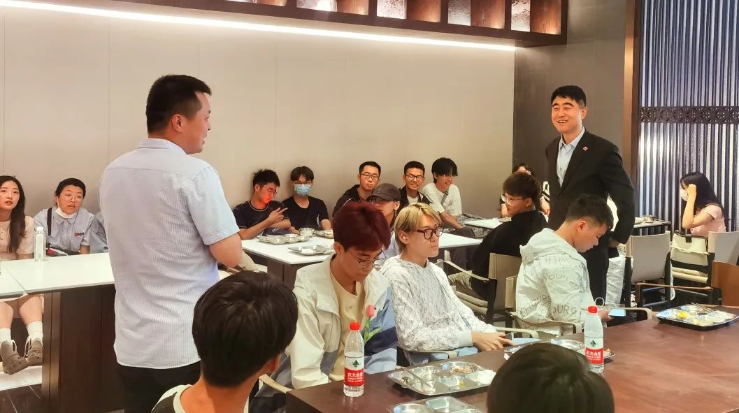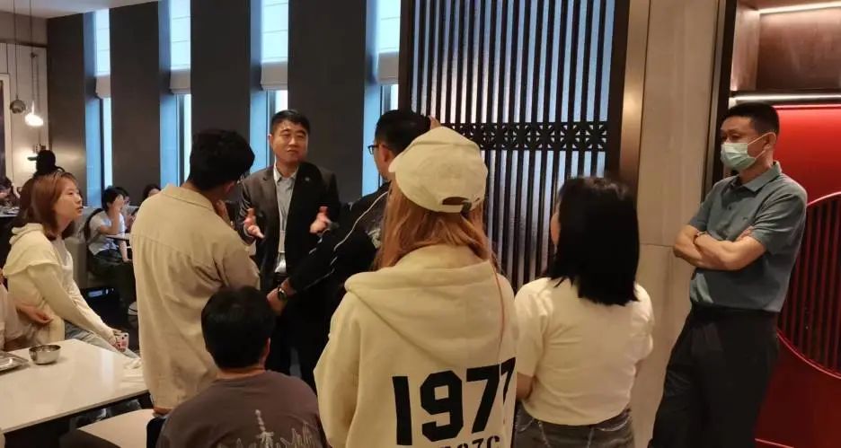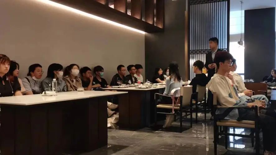 餐后,仟那酒店集团(郑州总部)经理与同学们进行了亲切友好的交流。经理结合自身职业发展经历,用生动的例子和幽默的语言就同学们关于专业知识和职业规划等方面的疑问进行解答,并鼓励大家要乐于与人交往、敢于展示自己,保持对学习、工作的激情,只有这样,才会在未来到达更高的山峰。