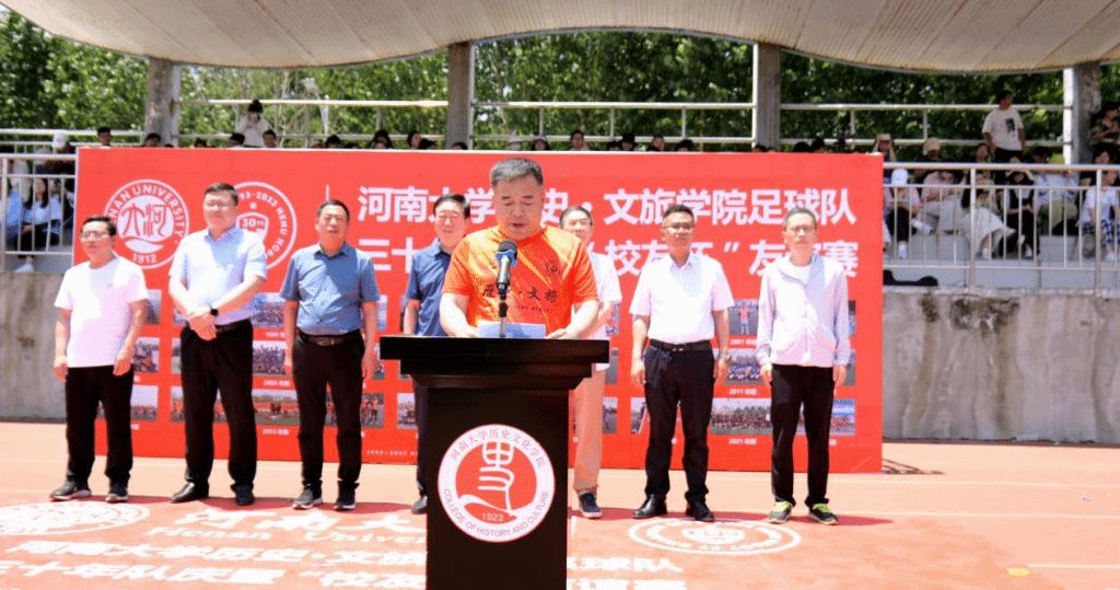 “在建队30周年之际,历届球员从全国各地返回母校,以友谊赛的形式共同庆祝队庆,这不仅在河大,在河南乃至全国的高校中都极为罕见。”许绍康发表代表学校向各位校友表示热烈的欢迎和诚挚的感谢,他说,历史·文旅学院足球队三十年队庆暨“校友杯”友谊赛,是校友文化建设的创新,为我们今后开展相关工作提供了良好的借鉴。我们要把校友们对母校的深情,化作未来工作的热情,关心和爱护每一位校友,吸纳更多校友参与到学校发展工作中来,助推学校“双一流”“双航母”建设,为实现母校百年名校振兴做出应有的贡献。