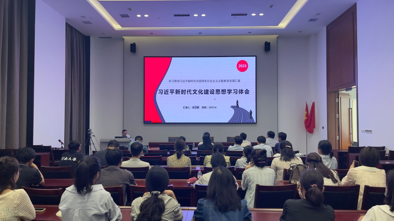 6月15日下午,师生党员赴开封博物馆进行参观考察,并就习近平总书记关于文化强国重要论述展开集体学习。副院长张召鹏作《习近平新时代文化建设思想学习体会》专题报告,报告从深刻把握中华文明的突出性、“两个结合”的重大意义、更好担负起新的文化使命三个方面展开,对习近平总书记关于文化建设提出的一系列新理念新思想新战略进行了解读。他指出习近平总书记关于文化建设的新思想新观点新论断,内涵十分丰富、思想十分深刻,是新时代党领导文化建设实践经验的理论总结,是我们党强烈文化担当和高度文化自信的集中体现,是推进文化传承发展和繁荣兴盛的根本指针,大家要以习近平总书记重要讲话精神为指导,不断深化对文化建设的规律性认识,担负起新的文化使命,为推进学校“双一流”建设作出应有的贡献。