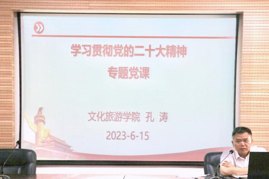6月15日上午,在学院302会议室,院党委书记孔涛为学生团员代表作《学习贯彻党的二十大精神》专题党课。党课从党的二十大主题、过去5年的工作和新时代10年的伟大变革、马克思主义中国化时代化、中国式现代化、全面建设社会主义现代化国家的目标任务、坚持党的全面领导和全面从严治党、应对风险挑战等七个方面深入浅出地对党的二十大精神进行了系统、全面的阐述。最后对团员青年提出殷切希望,希望他们用实际行动学习贯彻落实党的二十大精神,助力学院“双一流”建设,推进学院内涵式高质量发展。
