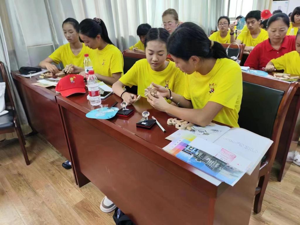 随后,夏令营团员们来到beat365亚洲版官网,听研学导师介绍中国古代建筑中常用的榫卯结构,解开起源于中国古代建筑中榫卯结构的传统玩具——鲁班锁。其古朴的外表、对称的形状和神奇的内部结构,使这些华裔华侨青少年们无一不感叹中华民族的智慧传承。
