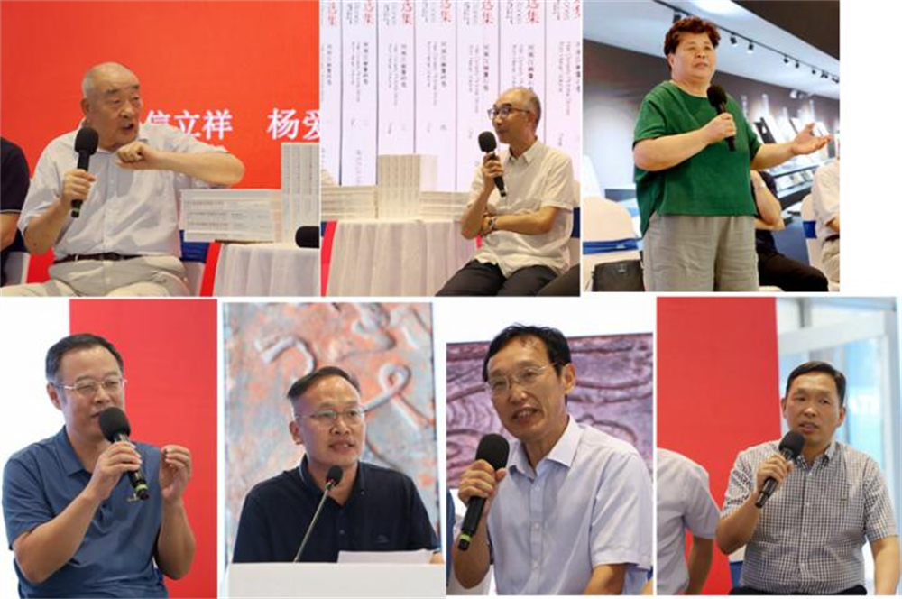 与会嘉宾分别就民间汉画像砖石的收藏、研究,以及本书的编辑、出版分享了自己的心得体会,并就汉代画像砖石蕴含的精神价值发表了各自的观点。信立祥指出,作为汉代特有的历史现象,汉画像砖石艺术表现了一种生机勃勃、积极进取的伟大时代精神。这种艺术,绝非个人的激情创作,而是整个国家、社会和民族的集体意识和认同。尽管已经过去近两千年,汉画像所彰显的深沉雄大的气魄,是中国精神的根脉和源泉。杨爱国在发言中指出,汉代画像砖石不仅表现了汉代繁荣富足的物质文化,也表现了汉代乐观向上的精神文化,汉代的民族精神和时代精神为当代中国发展提供了精神动力。与会专家还一致认为该书收录汉代砖石画像题材丰富、编校上乘、装帧大气、印刷精美,填补了民间收藏汉画像砖石出版的空白,具有较高学术价值、文献价值、审美价值和收藏价值。