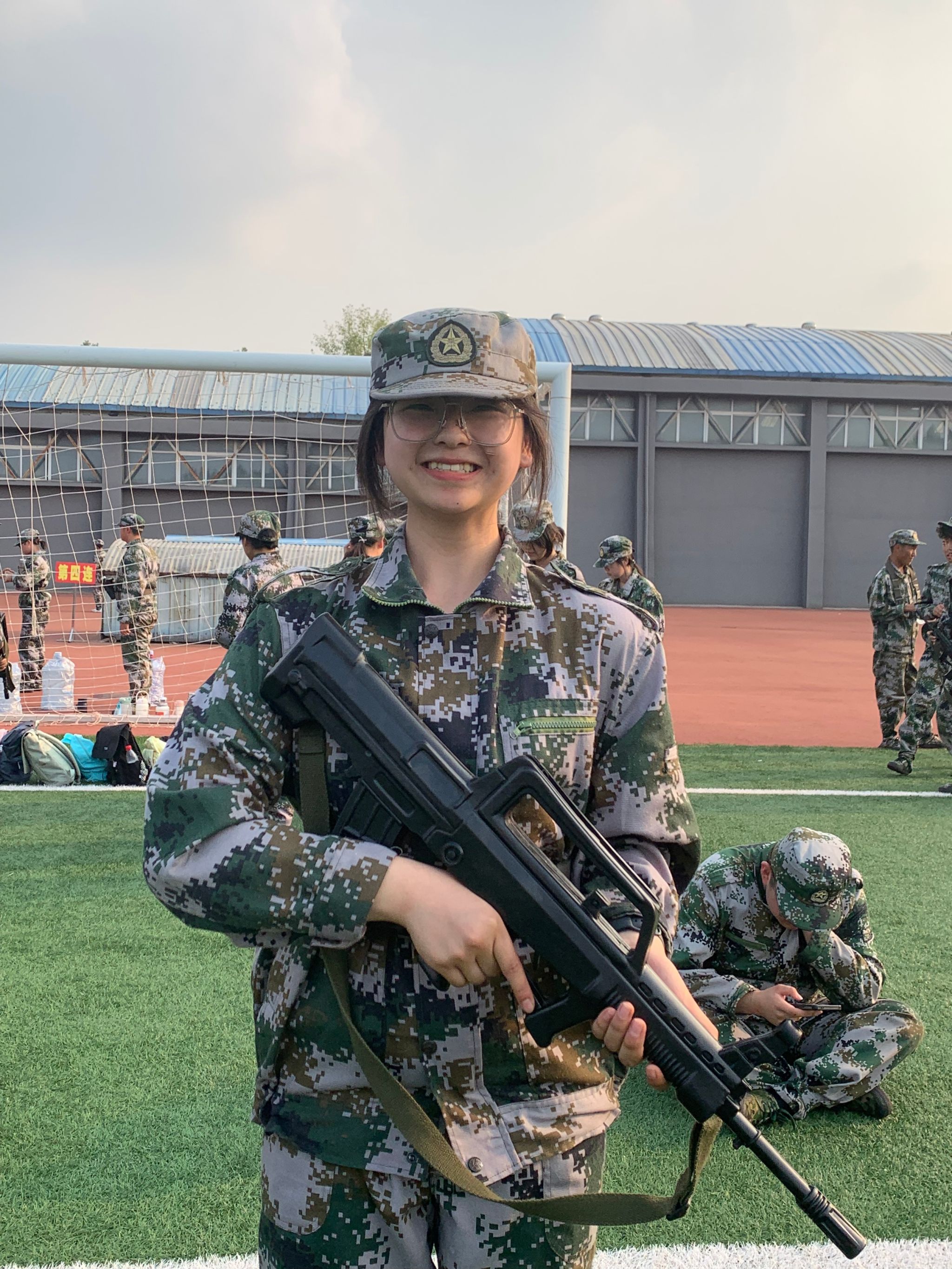 初秋清凉的微风抚过发梢,汗水顺着发丝滴落,场地中是整齐一致的步伐。在教官耐心教导下,军姿从摇摇晃晃到昂首挺胸,蹲姿从歪歪扭扭到坚直挺拔,我们从互不相识到团结一心。从队列训练到战术训练,再从爱国教育到歌咏比赛练习,我们付出了不少汗水,也成长了许多,更收获了和同学之间的珍贵友谊。