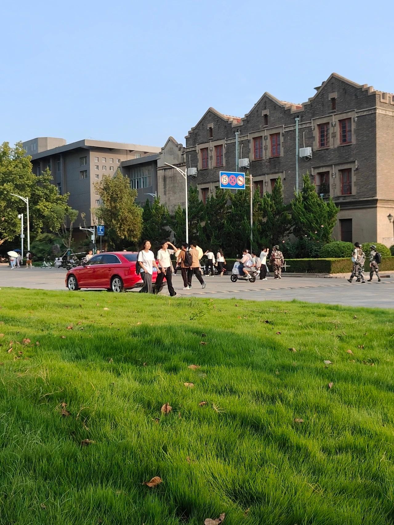作为来自新疆的同学,我第一次深切地领会到湿润气候的定义。草地是丰茂的,树叶是苍翠舒展的,风中是隐藏着水汽的,秋天是如此明显的,四季是这么分明的。我看到绿茵草地中有枯叶落下,星星点点地缀在草地上为草地做装饰;我看到蓝天白云下具有历史底蕴的建筑和行色匆匆上课的行人,感受到秋的到来和生活的气息。美景下的青春匆忙,才是大学的意义。