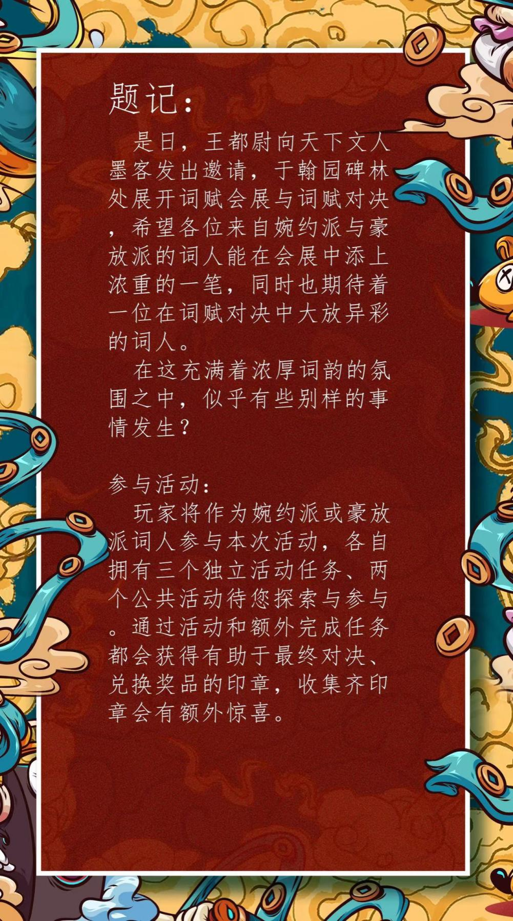 《宋词赴韵游》是以宋词为主题的剧本游活动,其结合剧本娱乐的游戏、演绎方式,将文旅以新形式展现在游客面前。人们作为剧本娱乐的“玩家”,与景区的“游客”所结合所诞生的新消费者,通过参与剧本娱乐活动、游览景区、参与相关剧情演绎,做到在娱乐中游景,在游景中娱乐;其结合历史与传统的故事线和活动推进,则又是另一种文化传承的方式。