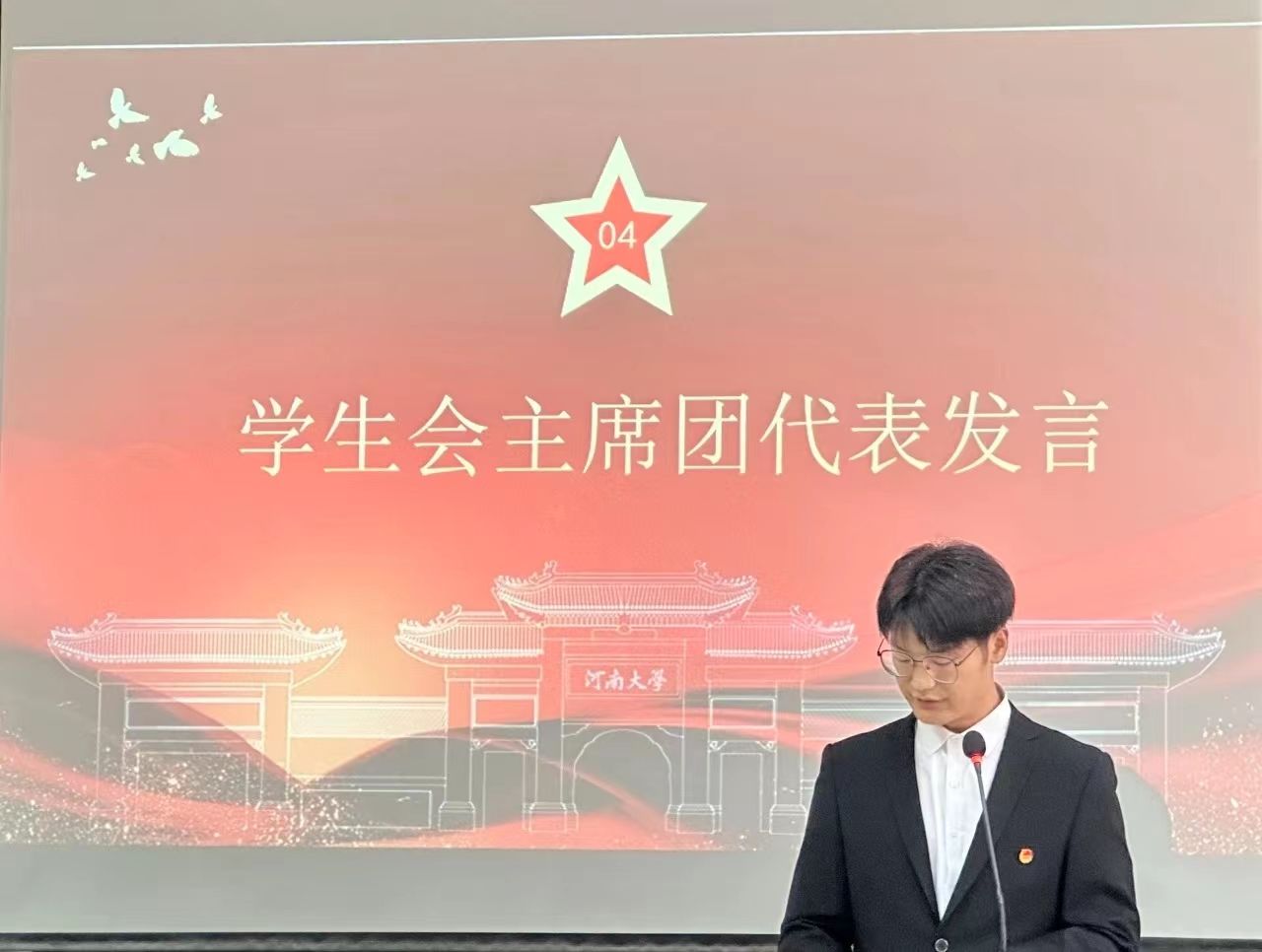学生会主席代表李文博发言,他强调学生会将继续秉持“全心全意为同学服务”的宗旨,发挥好学生与学院之间的桥梁和纽带作用,积极协调解决同学们在学习和生活中遇到的问题,为同学们提供更好的服务和支持。