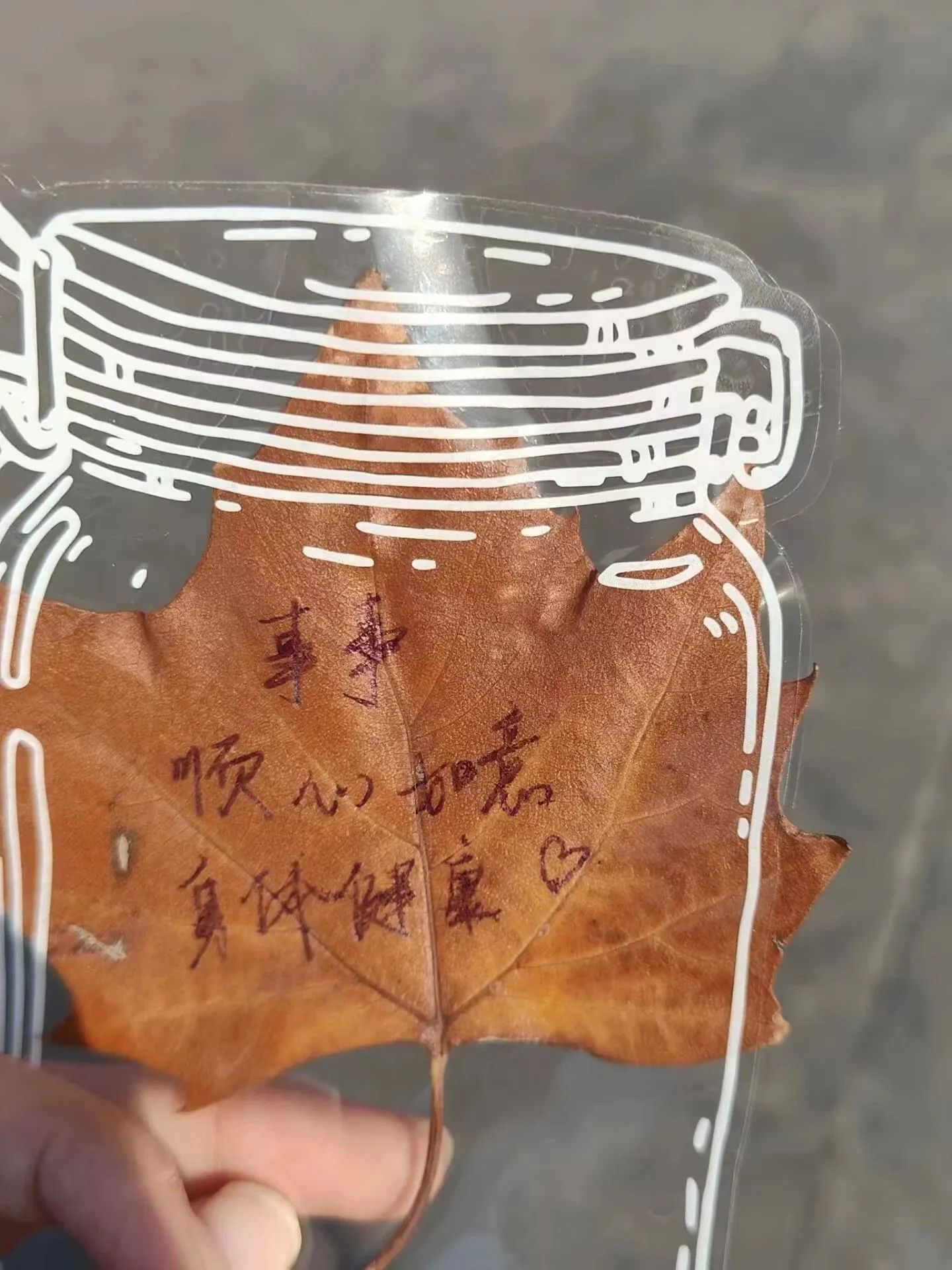 志愿者们用落叶制作书签,并且在书签上用祝福语传达生活的美好气息,变废为宝,增添乐趣。同时提醒我们在忙碌的时候,也不要忘记欣赏美丽。