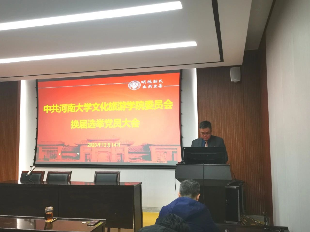 学院党委书记孔涛代表上一届党委向大会作《坚持改革创新 加快内涵发展 为建设高水平研究型学院而努力奋斗》的工作报告。报告全面回顾了过去五年的发展成果,客观分析了当前存在的主要问题,明确了今后五年的奋斗目标、发展思路、主要任务和措施举措。他表示,学院刚刚顺利举办了办学30周年暨创新发展大会等系列活动,正处在一个承前启后、继往开来的重要历史关头,全院上下要在校党委、校行政的坚强领导和大力支持下,发扬无须扬鞭自奋蹄的进取精神,乘势而上,顺势而为,力争在师资队伍建设、专业建设、教学改革、科研工作、党建与思想政治工作等方面迈上新台阶,取得新突破,形成更具特色的办学模式,不断提高办学水平,持续扩大学术和社会影响力,把学院建设成为特色鲜明、优势突出、国内一流的高水平研究型文旅学院。