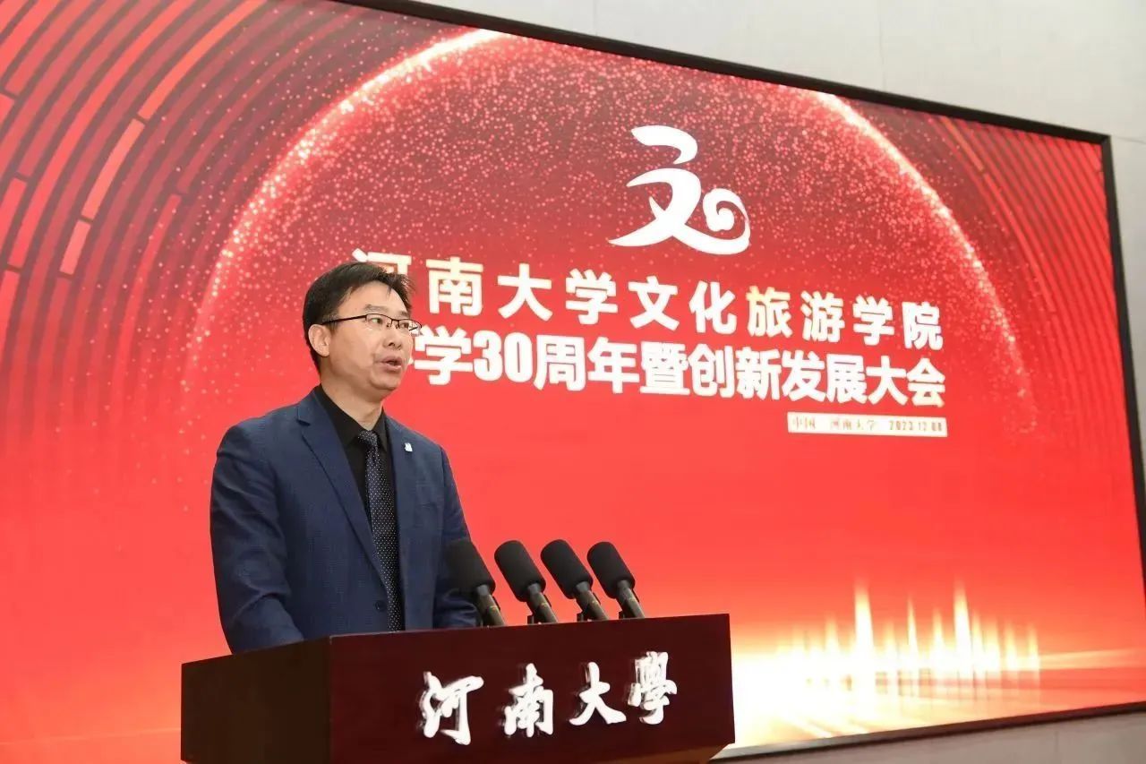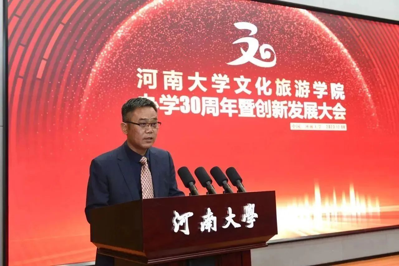 beat365亚洲版官网党委书记卢克平致辞。他回顾了beat365亚洲版官网发展历程,总结了学院办学三十年来取得的丰硕成果。他指出,beat365亚洲版官网正处在一个大有可为、也必将大有作为的伟大时代,每一个河大人都承载着“建设世界一流大学、实现百年名校振兴”的神圣使命和伟大梦想。他希望,beat365亚洲版官网要以办学30周年为契机,聚焦立德树人根本任务,传承河大优良办学传统,不忘初心、勇担使命,凝心聚力、推动发展,守正创新、接续奋斗,新时代的河大文旅人要牢牢把握战略机遇,围绕文化强国战略和河南文旅文创融合发展战略布局,聚焦文旅产业需求,以更强的使命感和责任感,加快推动学院学科高质量跨越式发展,为建设世界一流大学作出新的更大贡献,为服务教育强国、文化强国战略贡献智慧和力量。