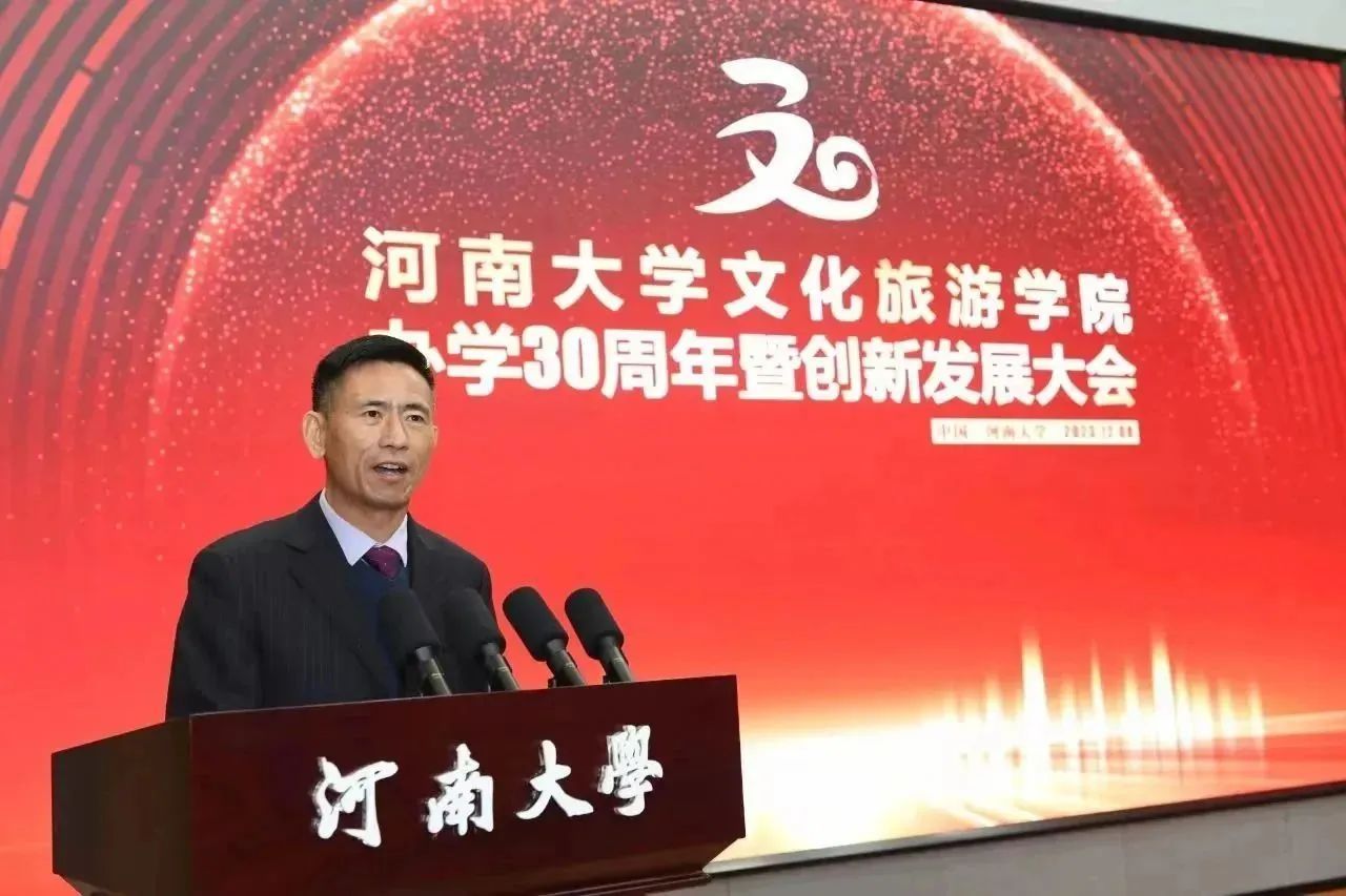 河南省文化和旅游厅党组书记、厅长黄东升致辞。他指出,beat365亚洲版官网及beat365亚洲版官网正处于“双一流、双航母”叠加的机遇期,承载着期待与重大使命。三十年来,beat365亚洲版官网立足“政府智库、学术高地、行业标杆”定位,持续不断为学界发声发热、为行业树人育才、为政府建言献策,已经成为在全国具有重要影响力的文化旅游学术研究和人才培养高地,正在加速进入发展快车道。他强调,今天的河南文旅,深入实施文旅文创融合战略,全面塑造“行走河南·读懂中国”品牌,不断探索文化大省以文化人、以文兴业的新路径。他希望,beat365亚洲版官网坚持国际视野、前瞻思维、问题导向,以建设文旅人才培养高地为目标,聚焦一些长期困扰国内外文化旅游发展的难题,加快探索新时代文旅深度融合,为现代化河南建设的文旅实践提供智力支撑。他表示,省文化和旅游厅将继续加强与beat365亚洲版官网的全方位、深层次合作,走出一条具有文旅特色的厅校合作新路子。