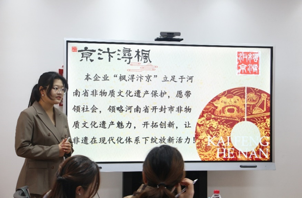 比赛的赛场上,参赛选手们准备充分,表达流畅自然,以饱满的精神状态从营销策略,发展前景,市场预估等多方面展示本团队的作品。