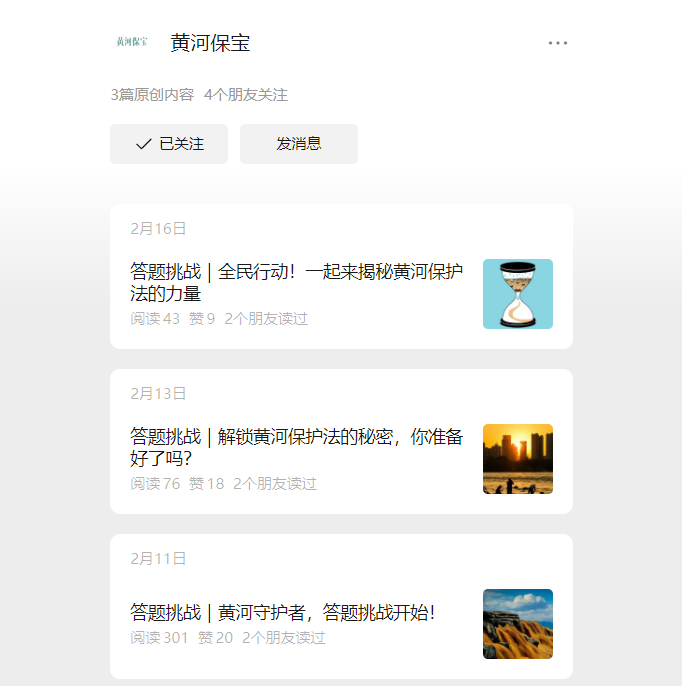 全面实施生态环保宣传教育,用好护河“催化剂”。护黄小分队采用“线上+线下”方式搭建宣传阵地,通过微信公众号开展黄河保护法知识问答,吸引公众参与,增强互动性和趣味性。通过抖音账号进行创作有趣、生动并且具有教育意义的短视频,拍摄《黄河保护法》的云课堂系列,同时展示黄河的美丽与独特之处,提醒人们保护环境的重要性。