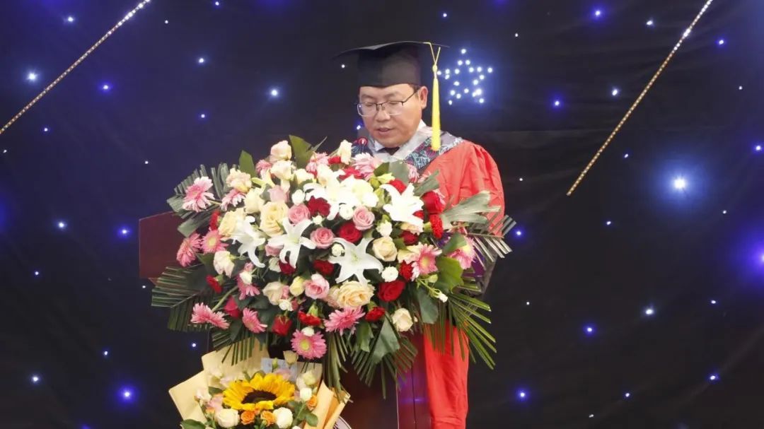 院党委书记孔涛向顺利完成学业的毕业生们表示热烈祝贺,并寄语大家要把握现在、理性面对现实,践行社会主义核心价值观。他鼓励毕业生们要勇于面对挑战、不断追求进步,在人生的道路上不断前行,努力奋斗,为祖国的繁荣复兴贡献出自己的力量,活出精彩的人生。