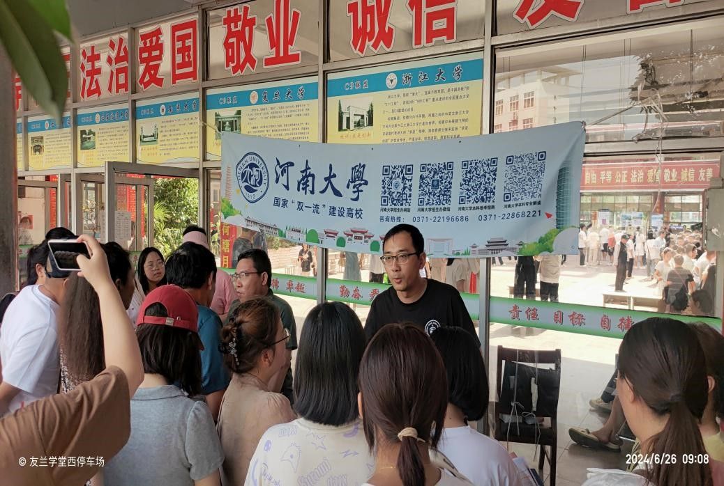 6月26日,张召鹏、温志全、李涵闻前往襄城高中、襄城县实验高中开展招生宣传。面对考生和家长的咨询,beat365招生宣传老师对历年招生位次、专业大类选择、保研及考研率,特别是本硕一体化、4+4本博实验班等特殊政策,进行了细致的宣讲,为广大考生和家长答疑解惑。