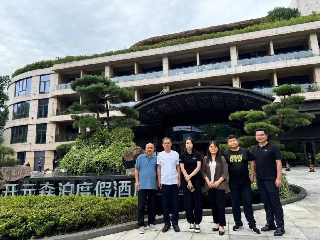 在嵊州,李竞艳一行参观考察开元名都大酒店,并同嵊州开元酒店总经理吕刚、人资经理李昊轩就人才培养、行业发展前景等进行了交流探讨,并就共建实践基地进行谋划。校友郭妮、时留萍参加座谈。